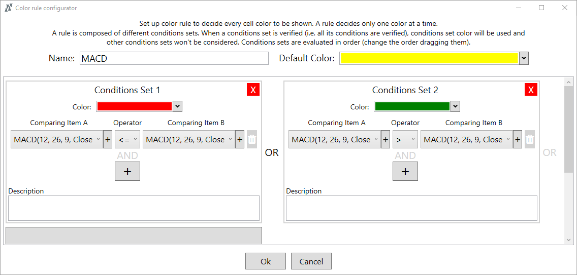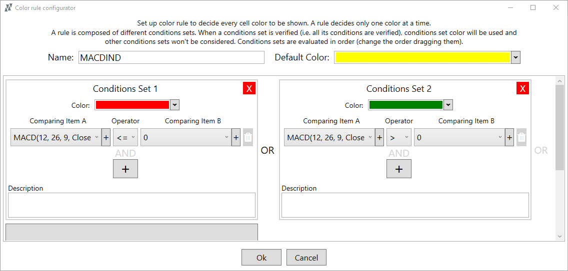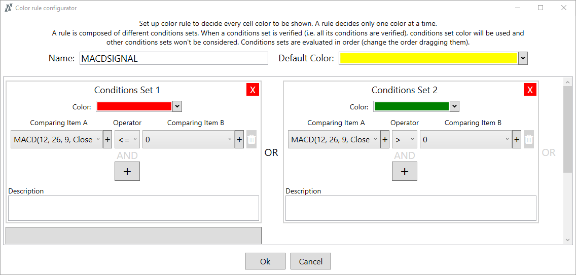 It's effortless, and we just put rules as previously described in words, setting the color we want to see. Since we want to see two different colors, we have to set the following two different rules: