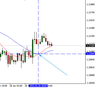 Looking at the previous image, we see for EURUSD where the red SMA is the faster and blue the slower; we have the following situation: