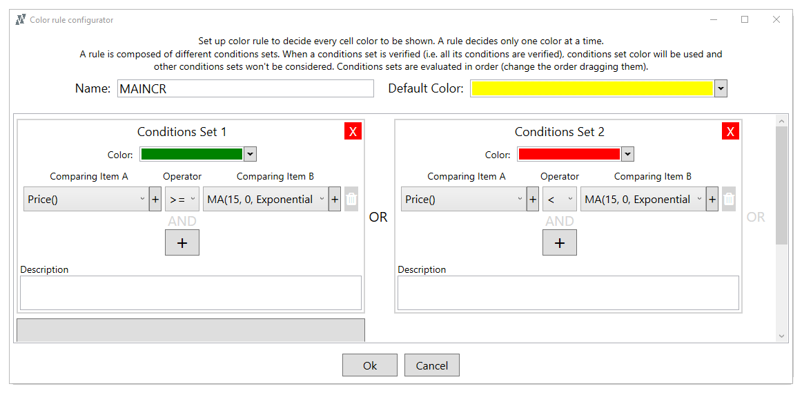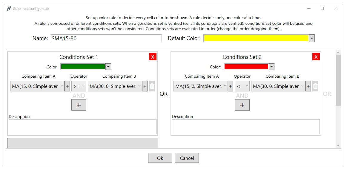 How? It's effortless, we just put rules as previously described in words, setting the color we want to see, so we set the following two rules: