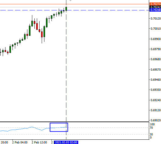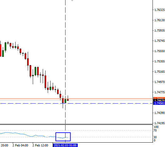Looking at the previous image, we see for AUDNZD that it's oversold for both timeframes (H1 and H4), and we expect a trend reversal, an uptrend.